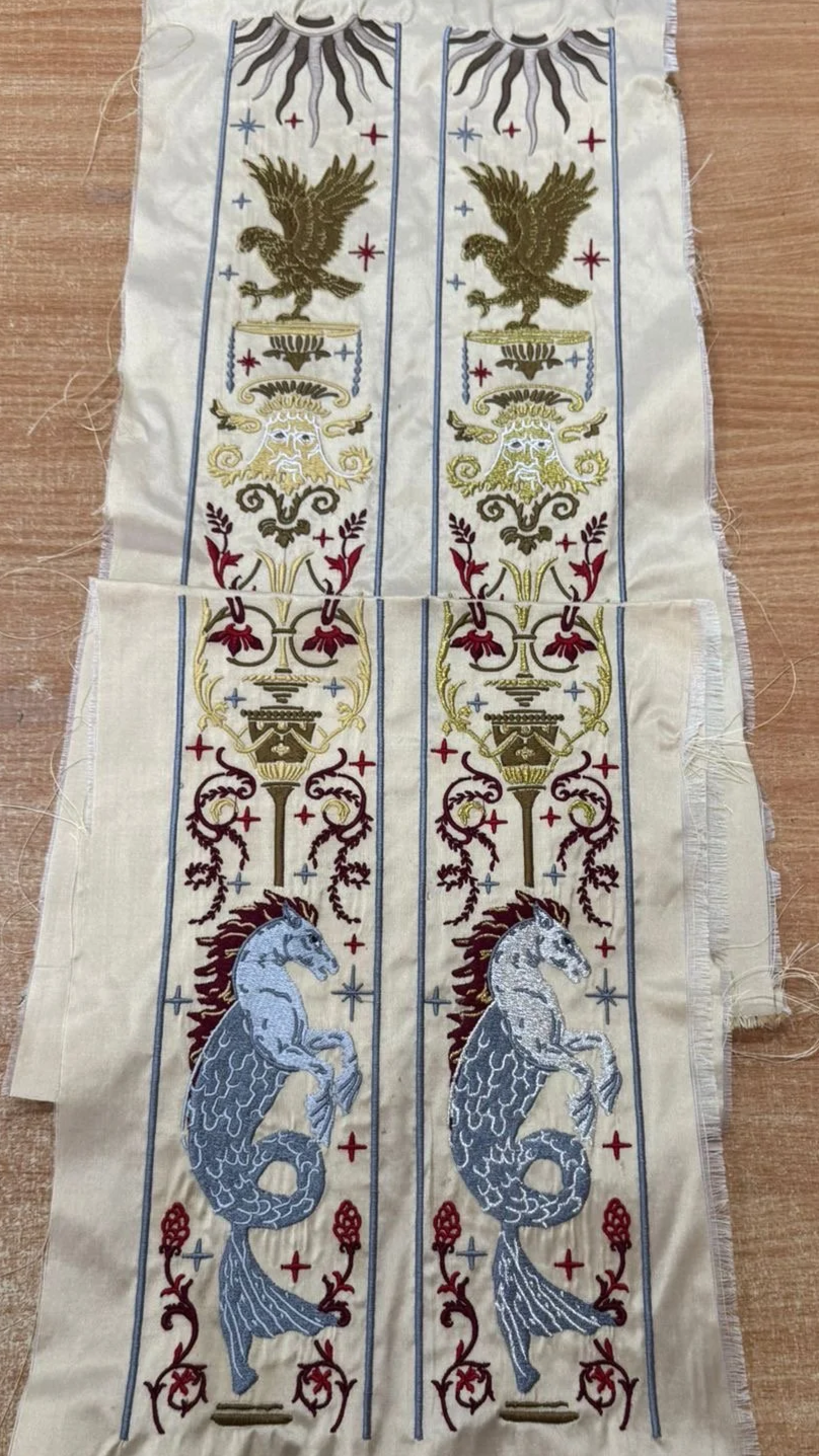 This piece is a Baroque-inspired, marriage binding cloth. Using subtle elements that represent both the bride and groom.